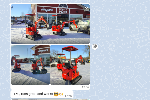 We received our TOROS mini excavator and tested it in winter conditions at around -15°C. The machine starts without issues and runs smoothly even in low temperatures. Hydraulic movements are stable, and overall operation remains consistent. So far, it performs well and meets our expectations for cold climate use.