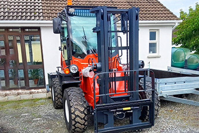 The rough terrain forklift is mainly used on unpaved and uneven ground. Its traction and stability allow safe operation in challenging environments. It handles material transport efficiently where standard forklifts are not suitable. We selected a TOROS rough terrain forklift to support outdoor jobsite operations.
